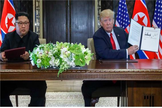 공동성명에 서명, ‘CVID’ 대신 완전한 비핵화를 향한 작업착수 표현