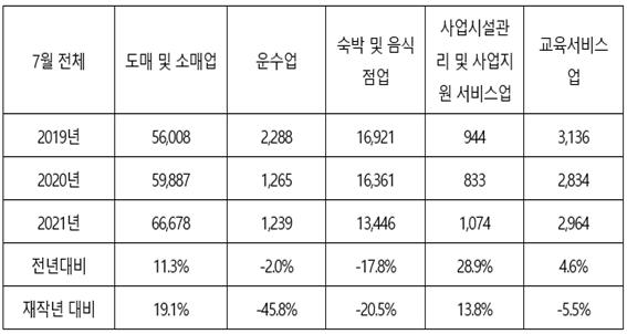 이는 코로나19 사태가 발생하기 이전인 2019년 7월과 비교하면 11.4% 증가한 수치다.