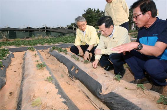 6월 23일(금) 오후에 전라북도 김제시 춘강마을을 방문하여 직접 가뭄 피해 상황을 살피고, 지하수를 농업용수로 끌어 쓰는 관정 개발 등 항구적인 가뭄 대책 방안에 대해 논의하고 현장 의견을 청취했다.