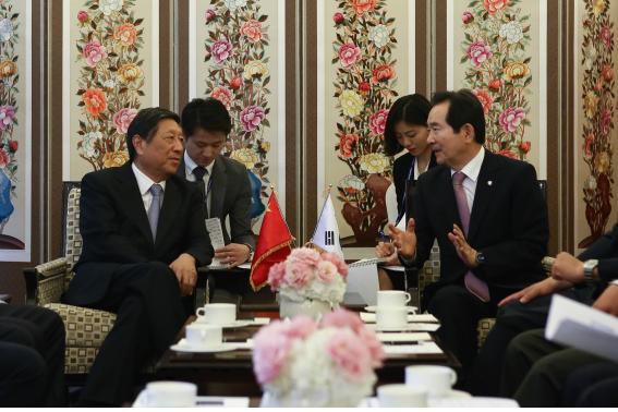 정세균 국회의장은 6월 26일(목) 오후 5시 롯데호텔에서 「제2차 유라시아 국회의장회의」에 참석을 위해 한국을 방문한 장핑(張平) 중국 전인대 상무위 부위원장과 만나 사드배치 등 양국 현안에 대해 의견을 나누었다.